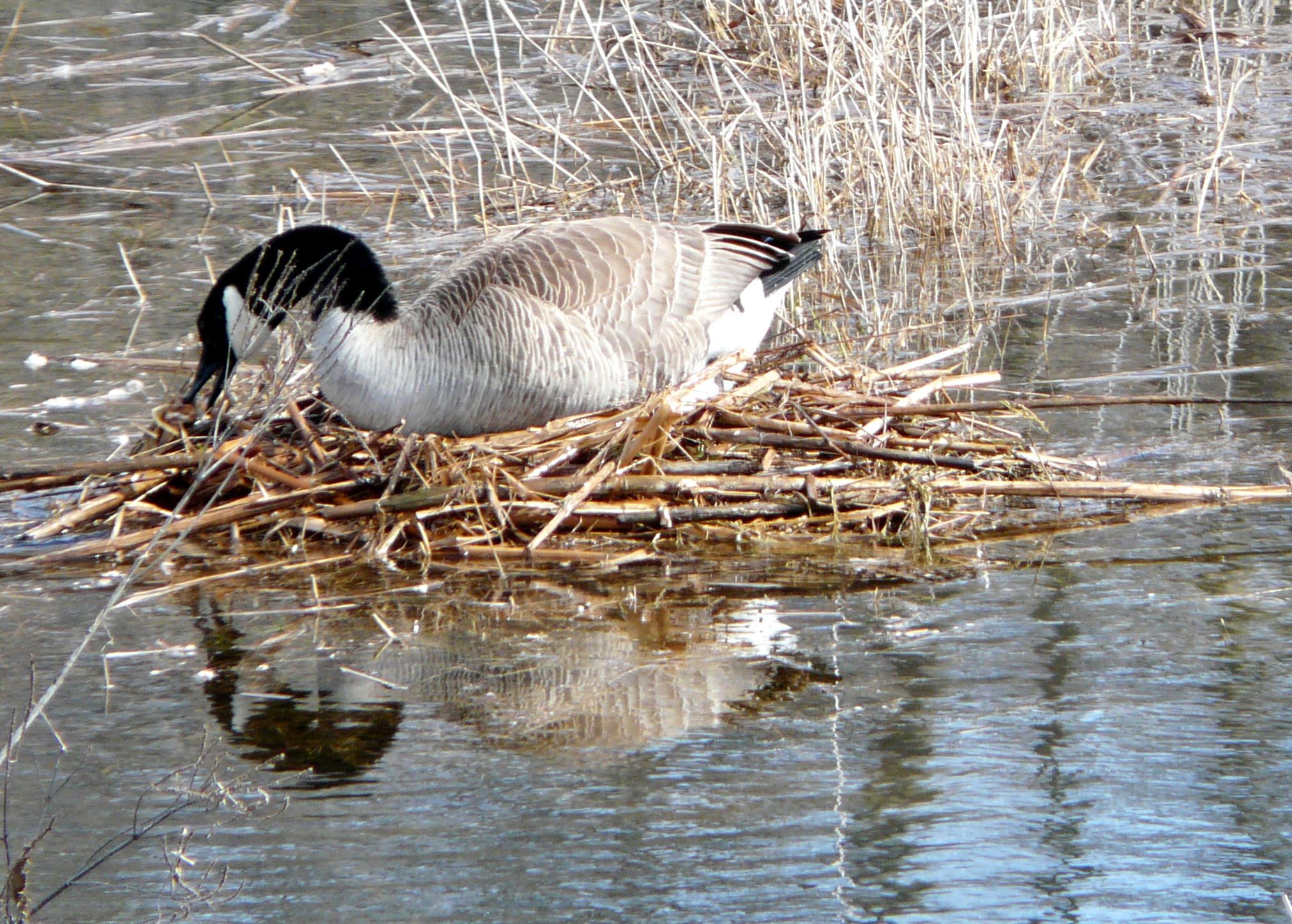 A few days later, the same mother goose was photographed now contending with flooding melted snow as it threatened her nest and eggs. She had built her nest on solid ground, well away from the water’s edge, but life had done what it does to all of us – been impossible to predict.